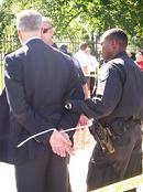 Does this look like an anti-war protester? Or a DFH? It’s actually a picture of a faithful and courageous Christian leader who is not ashamed of the gospel of Jesus Christ. Yesterday, Rev. John Thomas and Rev. Linda Jaramillo, both national leaders in the United Church of Christ, were arrested for attempting to deliver to the White House a petition for peace in Iraq. The petition carried some 60,000 signatures, including mine, I’m happy to say.