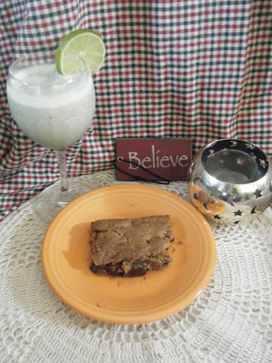For something to sip along with these squares of chocolate joy, I put the “lime in the coconut” along with some frozen bananas to make this smoothie: